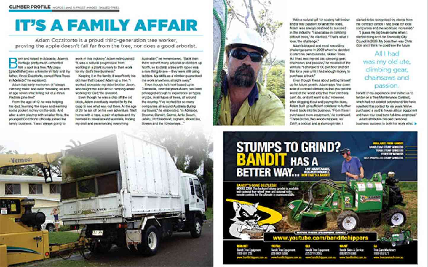 Born and raised in Adelaide, Adam’s heritage pretty much cemented him a spot in a tree. “My papa (grandfather) was a forester in Italy and my father, Vince Cozzitorto, owned Para Trees in Adelaide,” he explained.