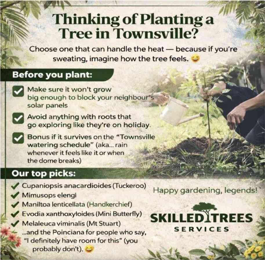 Choose trees that can tolerate Townsville’s heat and irregular rainfall patterns